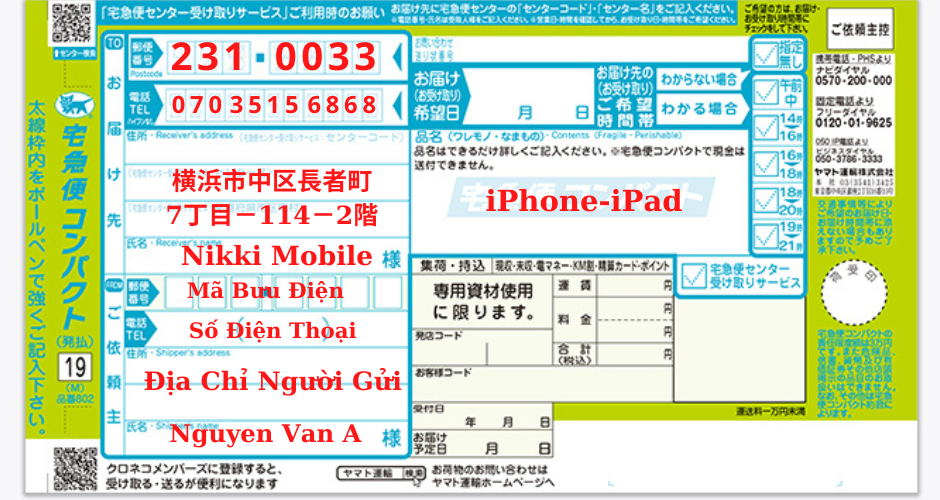 Gửi đồ qua Yamato bằng hình thức 宅急便コンパクト